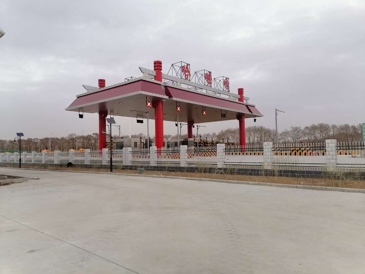 圖一為哈吡嘎收費(fèi)站白天太陽能庭院燈實(shí)景效果